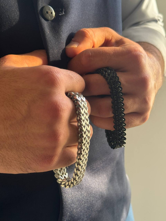دستبند کارتیر دوبل با قفل مگنتی، یک اکسسوری محبوب بین مردم هستش که از دو ردیف زنجیر کارتیر با طراحی دوبل تشکیل شده و با یک قفل مگنتی (آهنربایی) بسته میشود. این نوع دستبند به دلیل طراحی شیک و مدرن خود، هم برای آقایان و هم برای بانوان قابل استفاده است